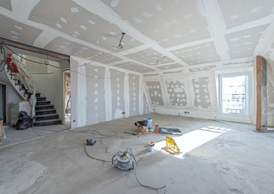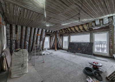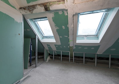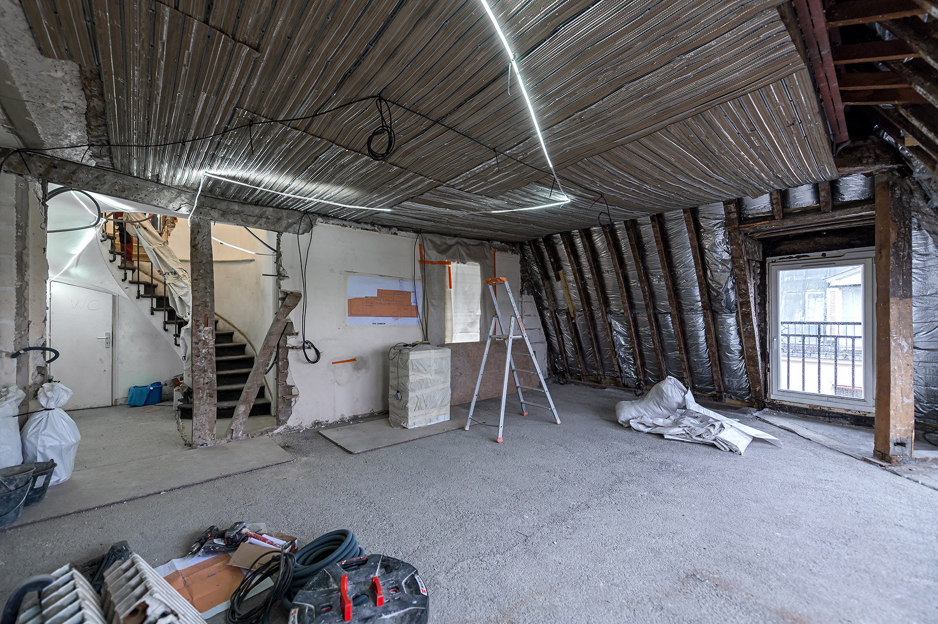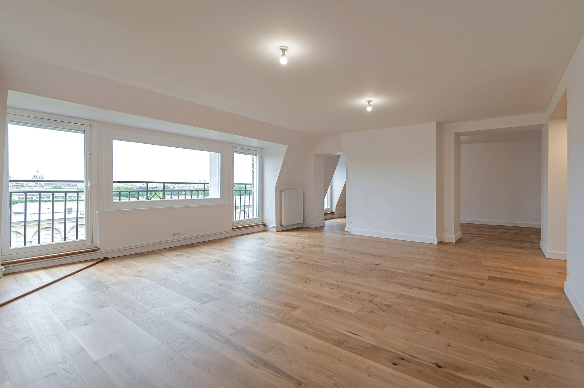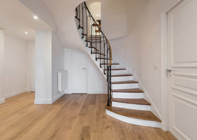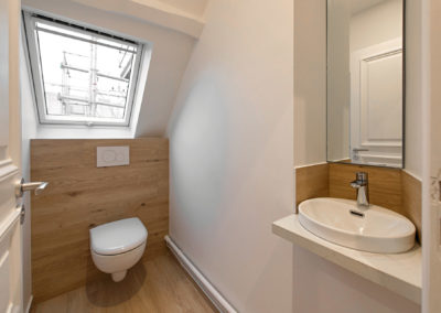 Restructuration complète des combles de ce bel immeuble donnant sur les Tuilleries. Nous avons réalisé un appartement en duplex T5, un appartement T4, et un Studio, nécessitant de nombreuses reprises en sous-œuvre pour agrandir chaque espace.
